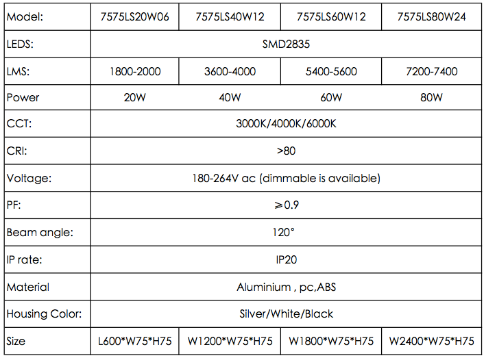 LED linear light BTM-7575 specification: